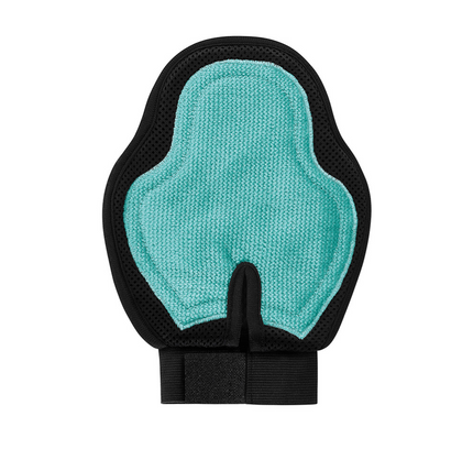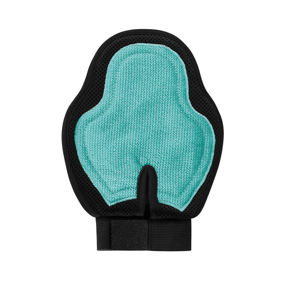 Guante redondo de tela transpirable sintética una cara con tela atrapa pelo para telas y la otra cara con púas de goma para eliminar pelo de muda del manto. Ajusta muñeca mediante cierre de velcro, y cinta interior para mejor sujeción.