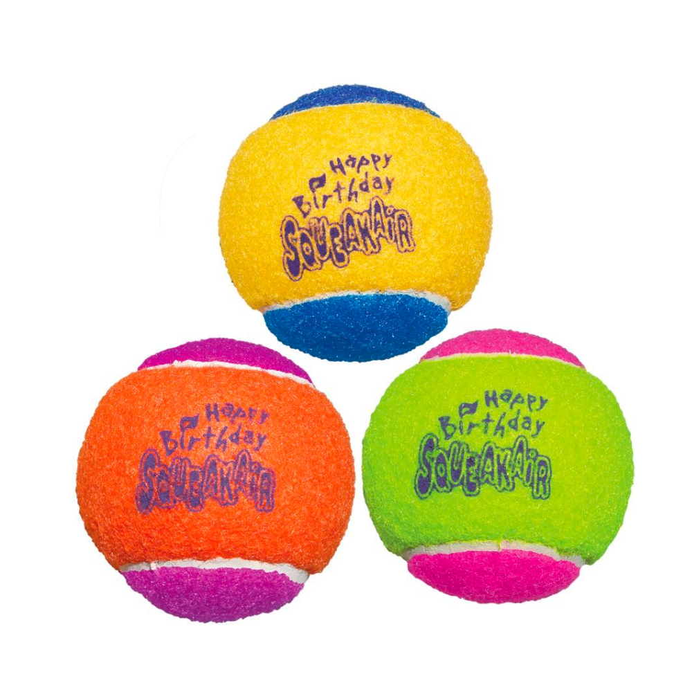 Kong Ball air 3x combina dos juguetes clásicos para perros —la pelota de tenis y el chirriador— para crear el juguete de buscar y recoger perfecto. Nuestra Squeakair Ball, resistente y de alta calidad, no desgastará los dientes del perro. Está hecha con un fieltro no abrasivo especial, no con el material abrasivo de las pelotas de tenis normales