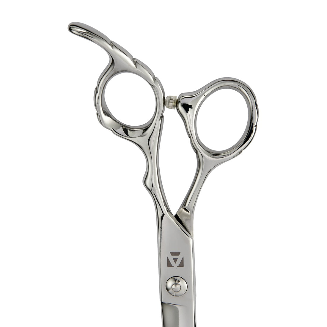 De hoja ancha y fabricada con acero japonés, facilita los trabajos en cabellos de densidad media hasta densidad fina.