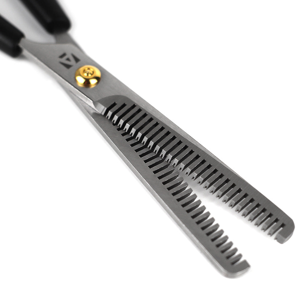 Tijera de peluquería de entresacar de 28 dientes en cada hoja.