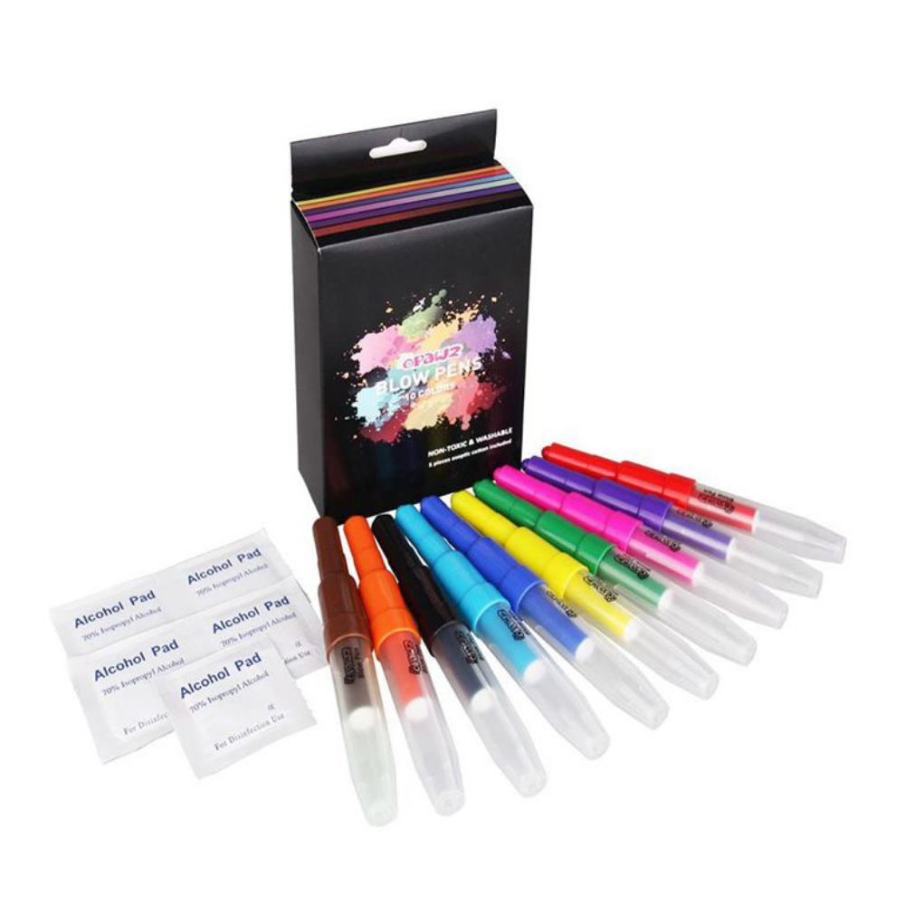 Incluye 10 colores diferentes en un juego: rosa, negro, púrpura, rojo, verde, azul claro, azul oscuro, naranja, amarillo y marrón.