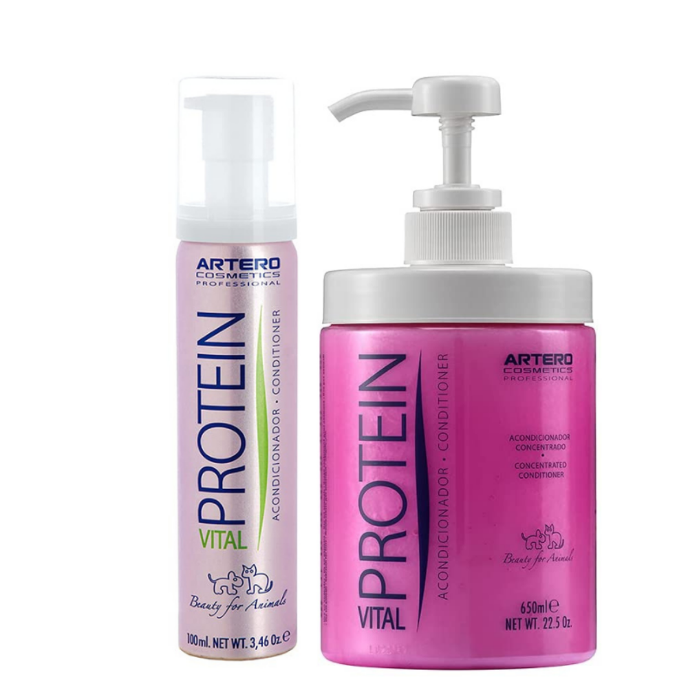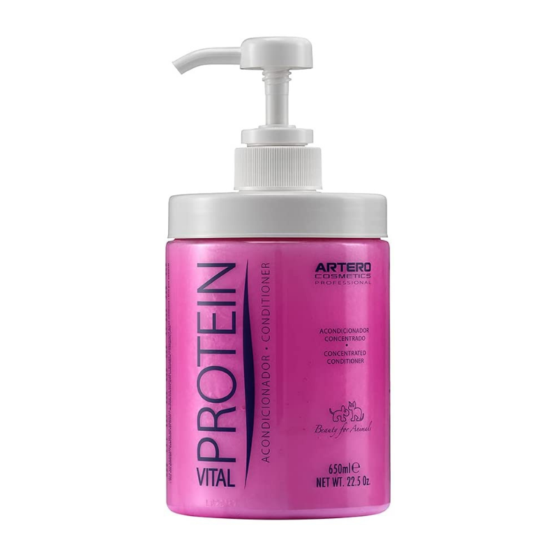 El acondicionador Artero Protein Vital está destinado, principalmente, a perros de pelo duro, mantos densos de doble capa, pelo corto, con rulos y gatos.