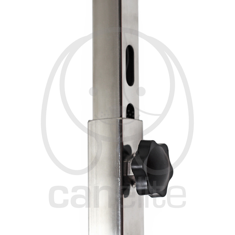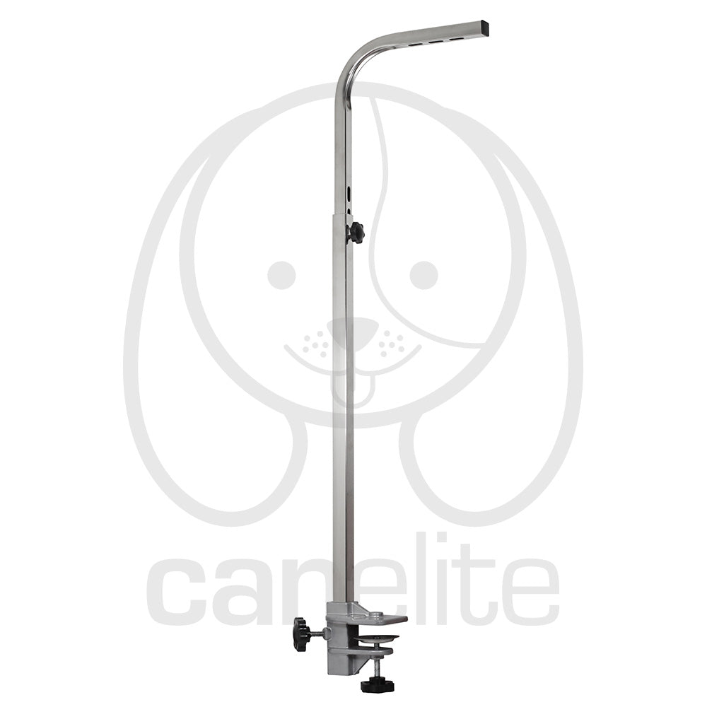 Brazo cromado de altura regulable para mesa de peluquería canina de exposición o auxiliares.