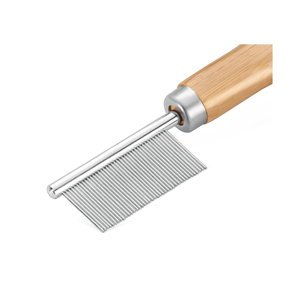 Este peine para perros es ideal para abrir el manto, incluso de gatos y conejos, y mantener su pelo libre de partículas extrañas y suciedad. Sus púas, con puntas redondeadas, permiten el cepillado de perros de diferentes tamaños, razas y densidad de pelo.