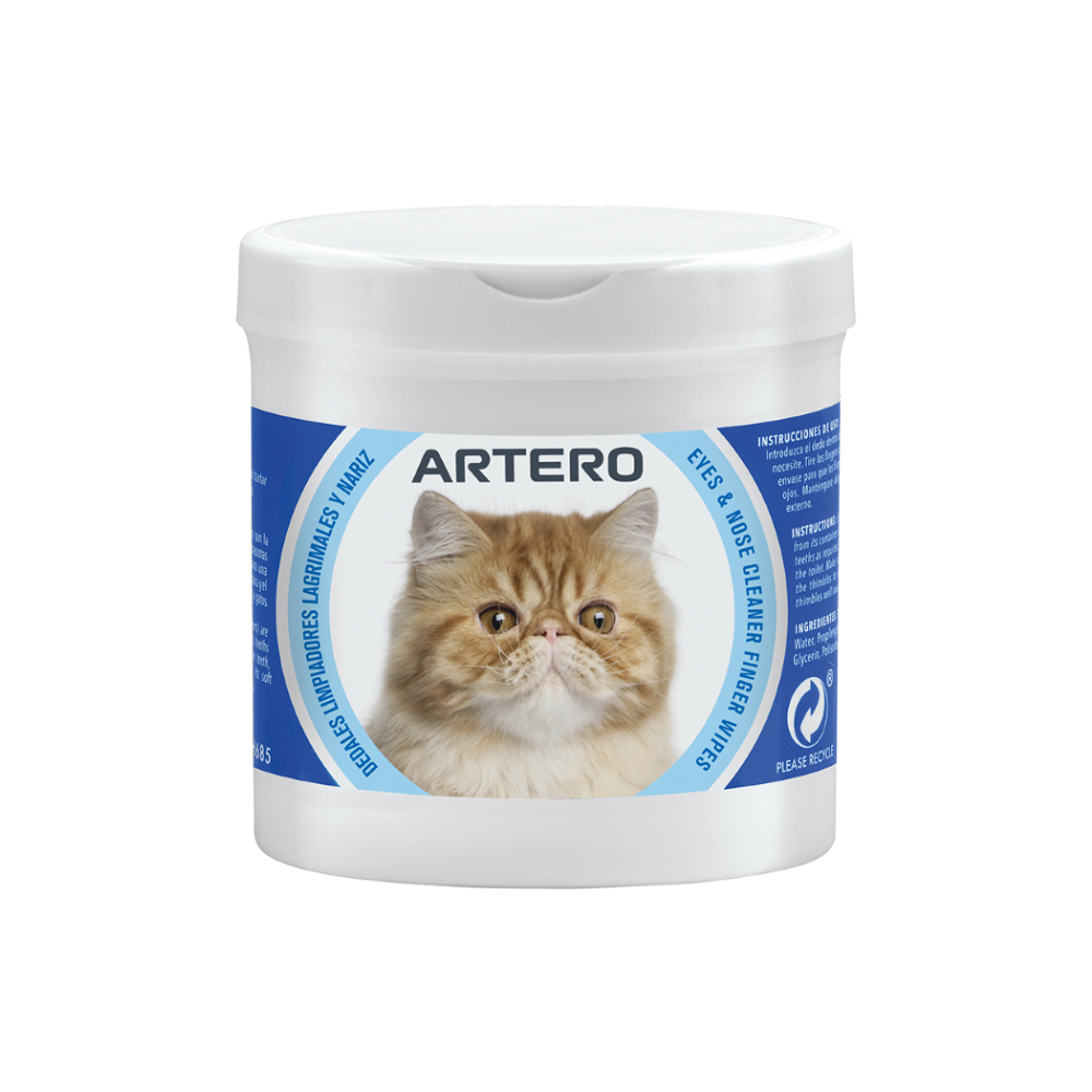 Los dedales de limpieza para gatos de Artero permiten una limpieza suave y cómoda de los felinos. Con ellos se puede arrastrar fácilmente la suciedad de la nariz y los ojos.