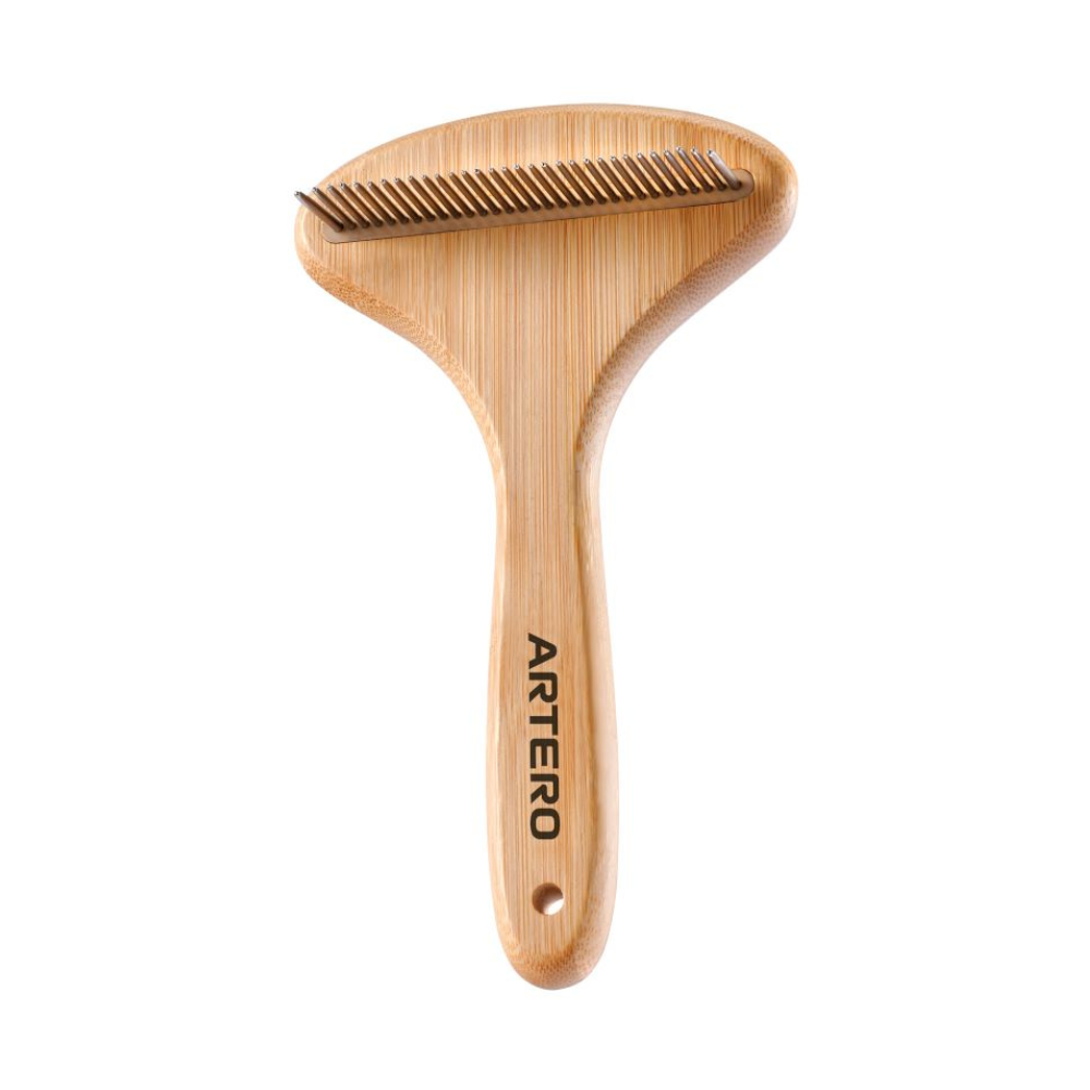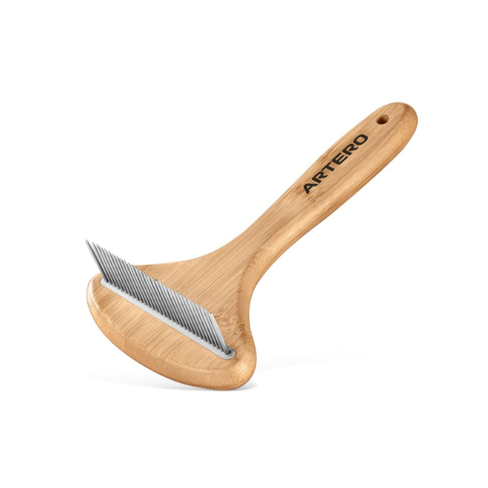 El rastrillo para perros de Artero es ideal para arrastrar muda y peinar el manto. Además, ayuda a eliminar los enredos de pelo, desenredándolas gracias a su práctica forma