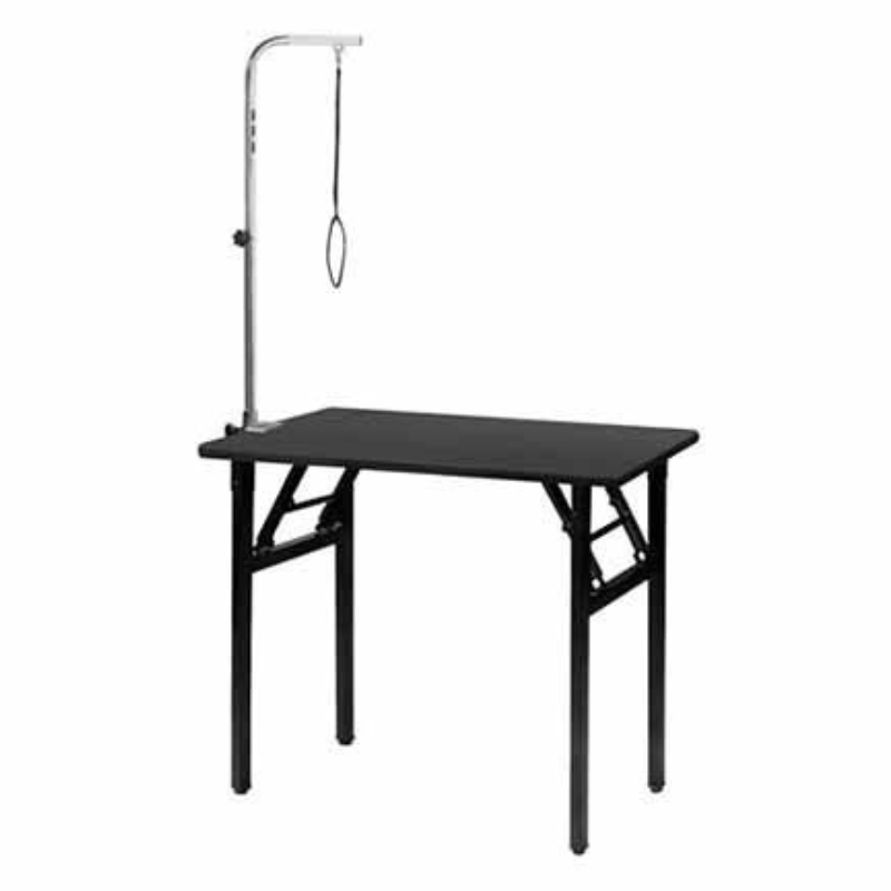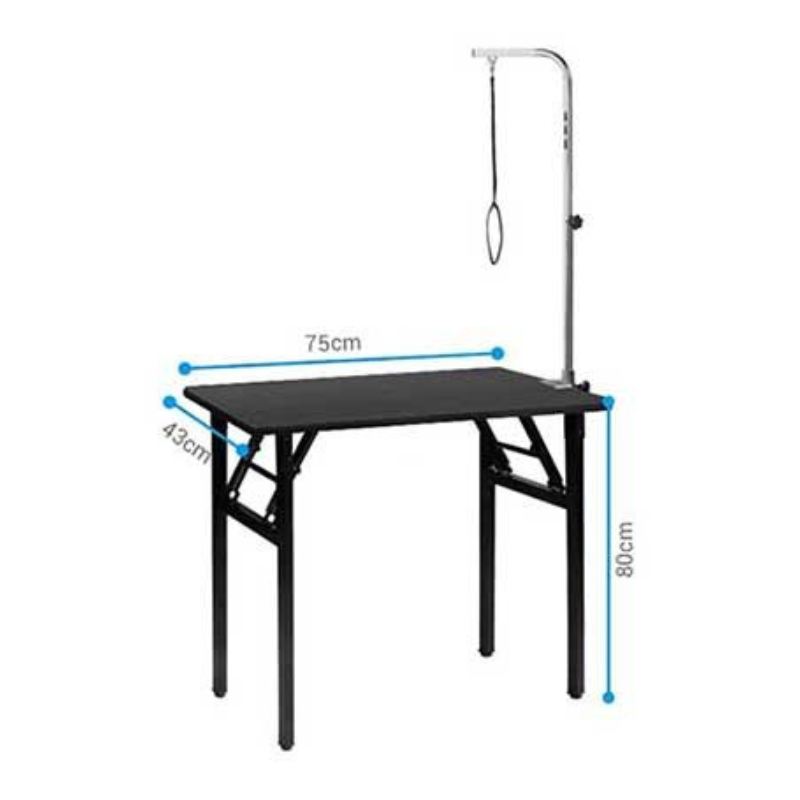 Mesa plegable ligera para exposición. Tablero antideslizante de 75x43cm para economizar el espacio en los transportes. Altura de 80cm, lleva en las patas reguladores de altura para evitar balanceo durante el trabajo. Incluye brazo metálico con correa. Medidas plegado 75x43x13cm