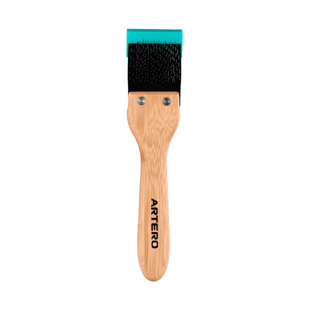 - Esta carda para desenredar nudos persistentes y abrir el manto proporciona un cabezal flexible que se mueve hacia atrás y hacia adelante dependiendo de la presión que ejerza el profesional.