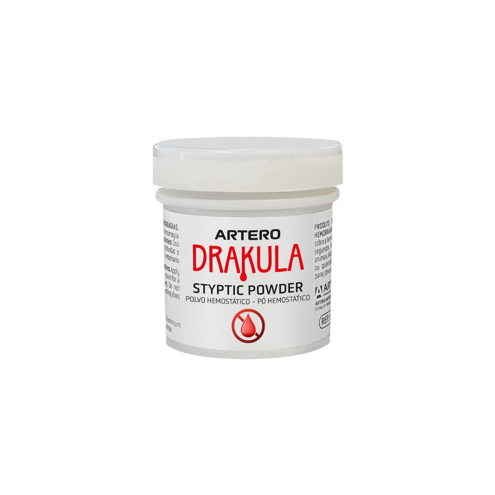Polvo hemostático para cortar las pequeñas hemorragias producidas por el corte de uñas. Envase cilíndrico con tapa de rosca. Sistema novedoso de dosificación del polvo mediante plataforma agujereada que permite la aplicación directa en la uña. Incluye bolsa antihumedad para evitar el apelmazamiento.