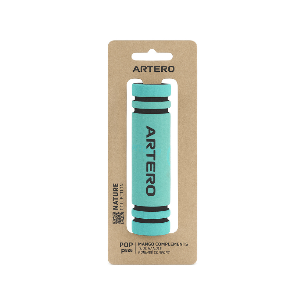 Mango de espuma para adaptar a los complements Nature Collection. Un accesorio que mejora la ergonomía, sujeción y confort de las herramientas Artero. De color turquesa con 4 anillos y logo grabados que ofrecen aun más grip. Se adapta perfectamente a los mangos y no se sale. Se acopla insertando en mango por el orificio central pudiendo lubricar con un aceite o acondicionador que ayude al deslizamiento.