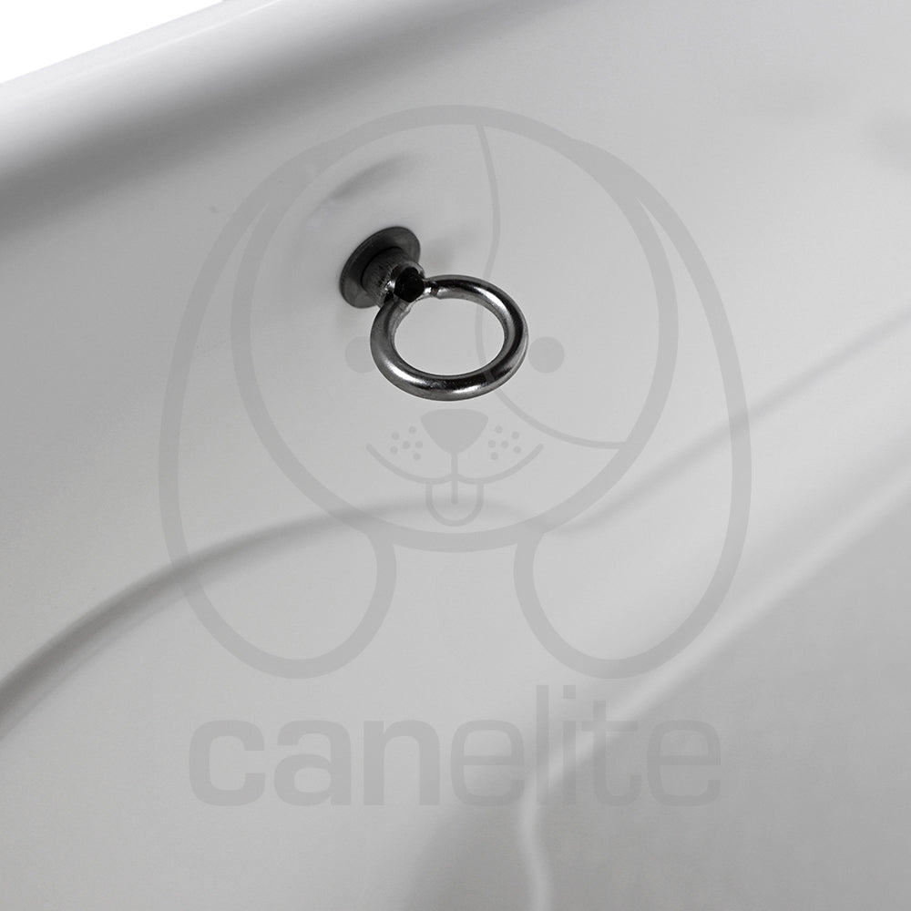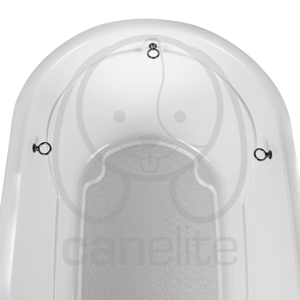 Ganchos de sujeción que mantienen a la mascota segura durante el baño.