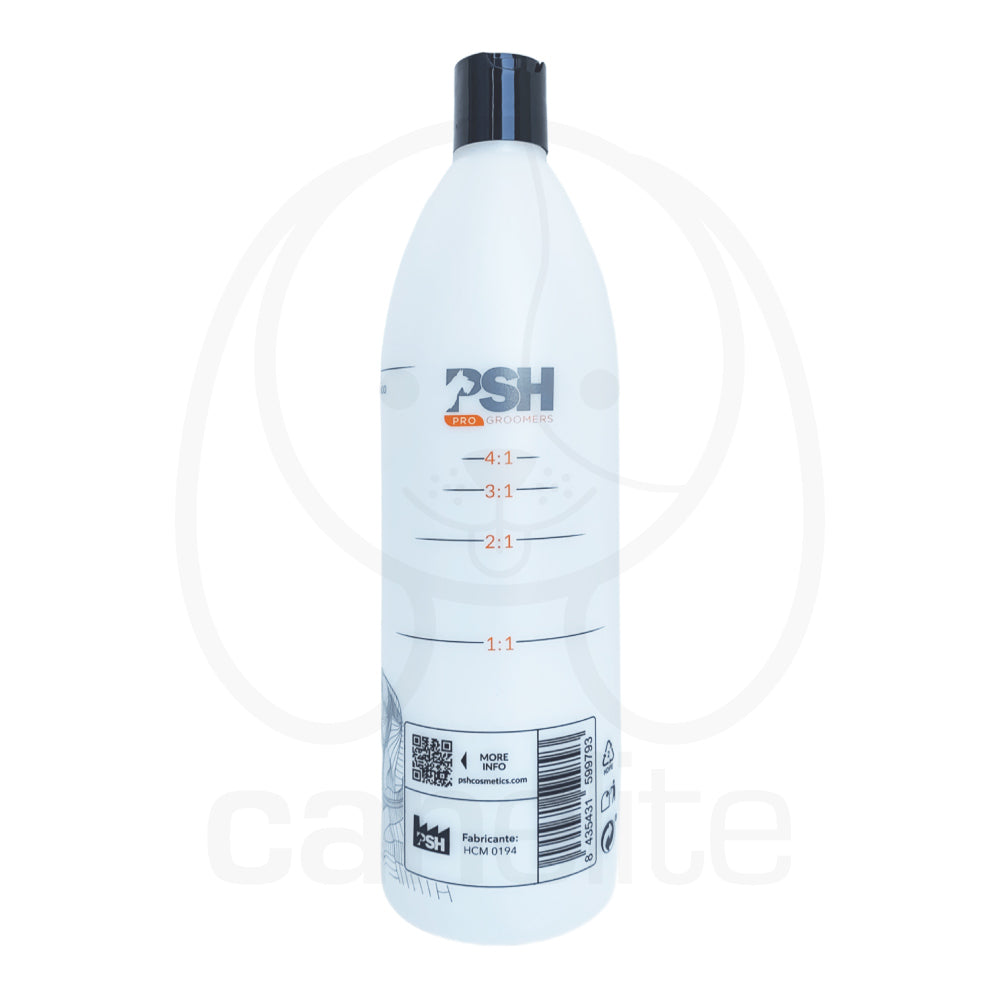 si la proporción es, por ejemplo, 3+1, se coloca agua hasta la línea que indica 3:1 y se rellena la botella con shampoo hasta la LÍNEA DE LLENADO.