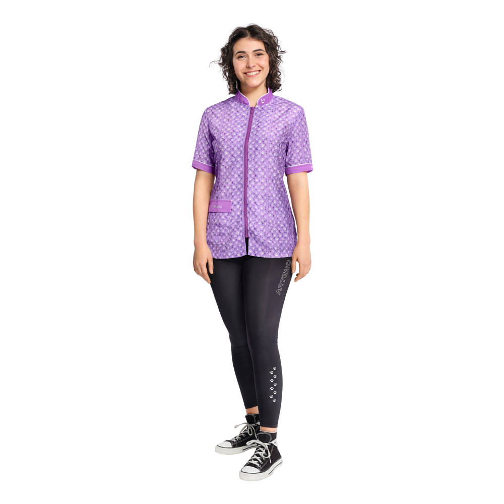 El vestuario laboral de manga corta está diseñado por Artero para peluqueras caninas, veterinarias, auxiliares de clinica veterinaria, criadores o personal relacionado con el mundo del perro.