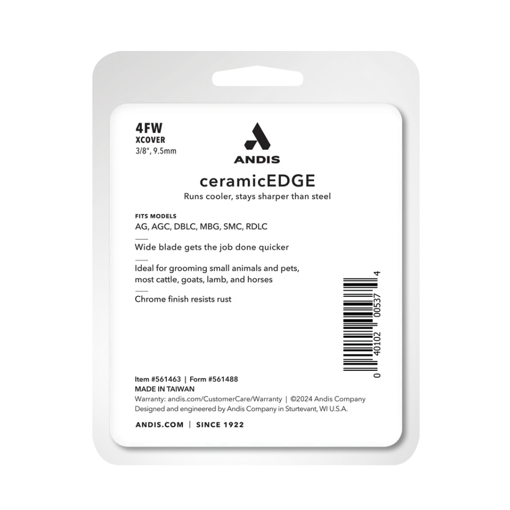 Además, las cuchillas cerámicas se mantienen más frías y afiladas durante más tiempo. La cuchilla inferior está fabricada en acero al carbono de alta calidad, resistente a la corrosión, para una mayor durabilidad y vida útil. Perfectas para el aseo de perros grandes, equinos y ganado, estas cuchillas son compatibles con todas las cortadoras profesionales Andis de cuchillas desmontables.