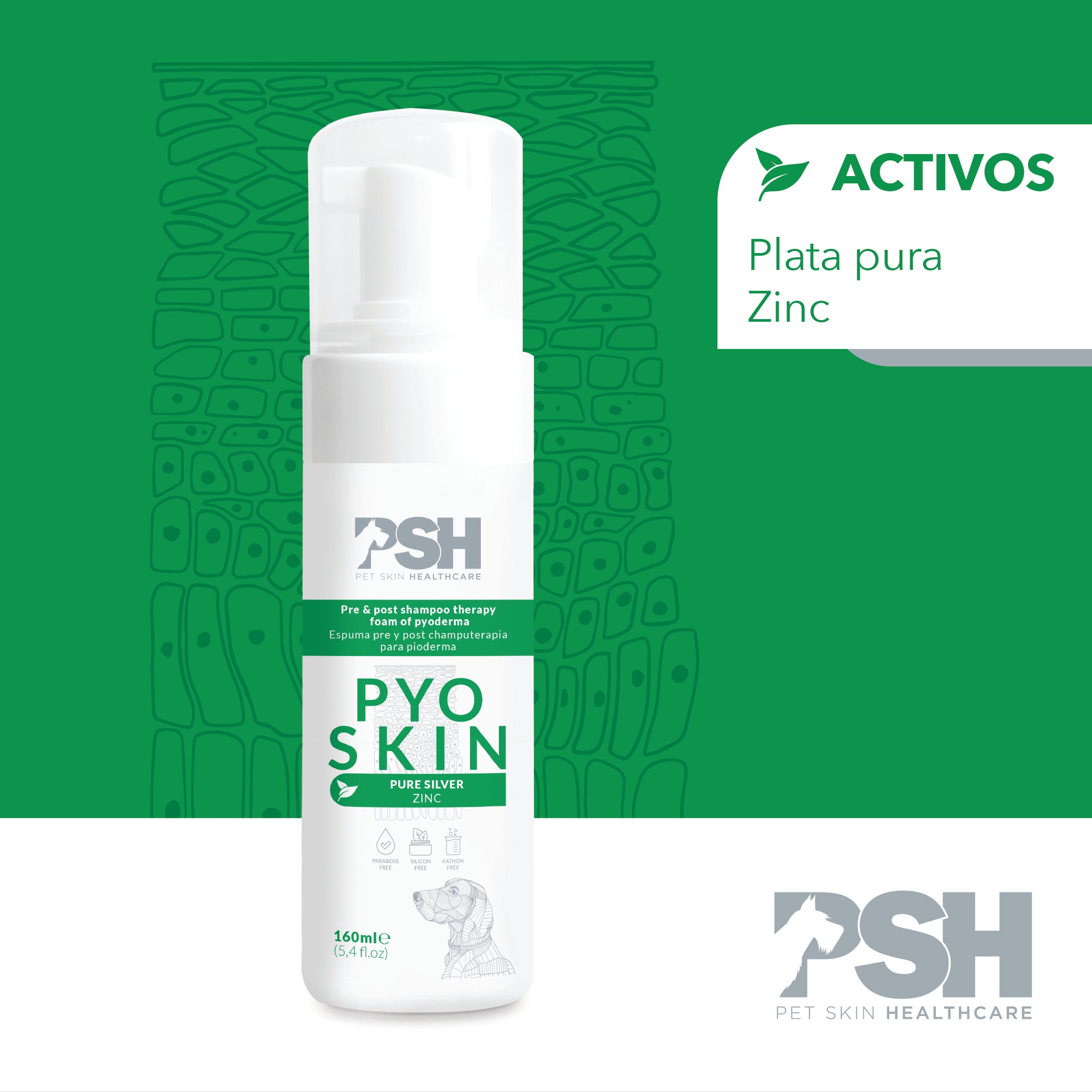 Es una espuma codayuvante de champuterapia prescrita, ayudando a mejorar la sintomatología. Formulada con glicerina, polvo de Plata pura y Zinc. La Plata pura, de obtención física, inactiva los enzimas intracelulares de las bacterias, hongos y microorganismos a la vez que daña el ADN bacteriano, imposibilitando la reproducción de la bacteria.