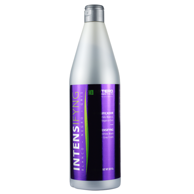 La fórmula del Artero Intensificador de Color elimina al 100% tonalidades amarillentas en pelaje de color blanco y realza los colores negros y grises.
