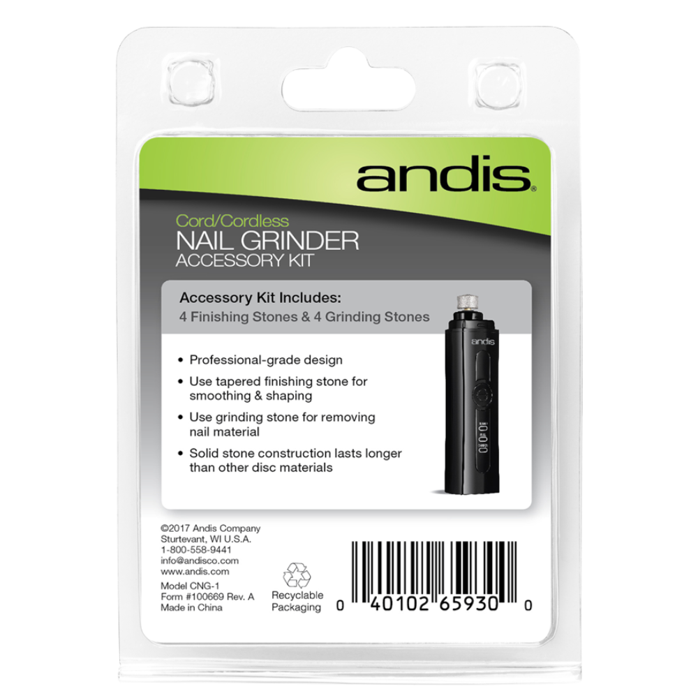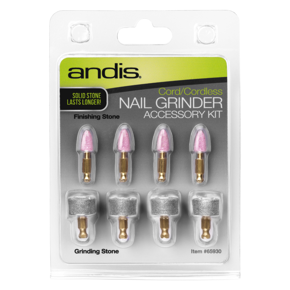 Set de accesorios de repuesto para limador de uñas cordl/cordless Andis Recorte de forma segura las uñas de su mascota. • Compatible solo con el limador de uñas cordl/cordless Andis • Diseño profesional • Use piedra de acabado cónica para alisar y dar forma fina • Use piedra de moler para dar forma y quitar