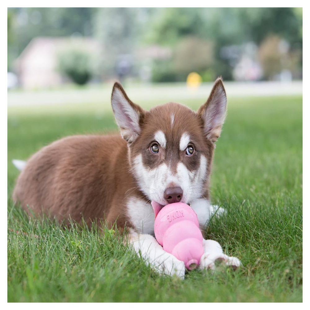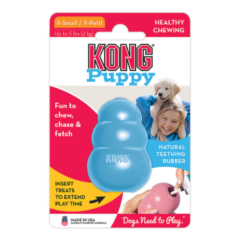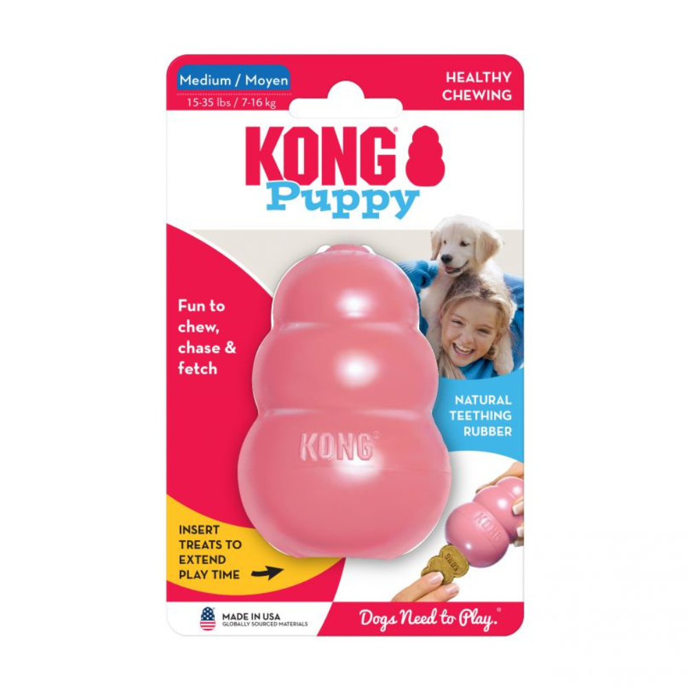 El juguete KONG Puppy es el juguete original que inició la línea de productos KONG. Los veterinarios y adiestradores recomiendan rellenar el snacks para ayudar en el adiestramiento en jaulas, reducir la ansiedad por separación, favorecer un comportamiento de masticación adecuado y desalentar el mal comportamiento.