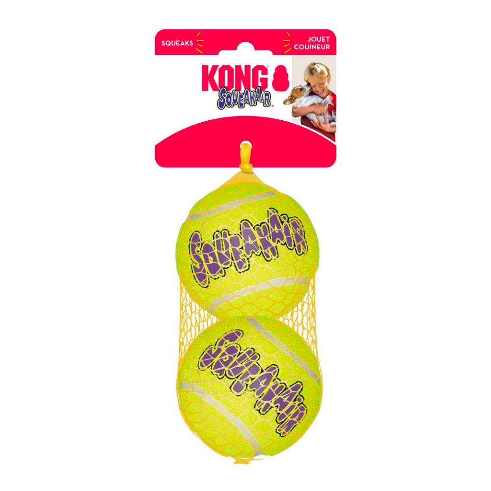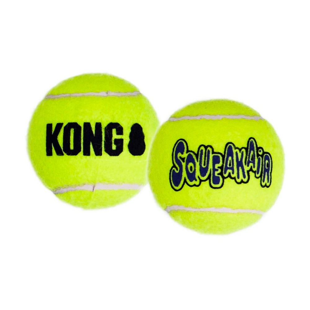 La Kong AirDog Squeakair Ball combina dos juguetes clásicos para perros —la pelota de tenis y el chirriador— para crear el juguete de buscar y recoger perfecto. Nuestra Squeakair Ball, resistente y de alta calidad, no desgastará los dientes del perro. Está hecha con un fieltro no abrasivo especial, no con el material abrasivo de las pelotas de tenis normales.