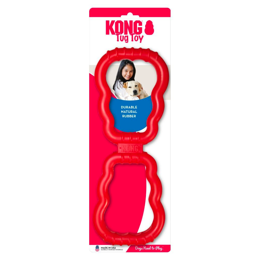 KONG® Tug, es un potente juguete interactivo, hecho de goma roja natural que fue creado para satisfacer las necesidades de juego que tienen nuestros peluditos. Debido a su goma resistente y a sus características flexibles, tiene una buena durabilidad y proporciona un buen elemento para el control de la ansiedad y el aburrimiento, mientras promueve dientes y encías saludables, ¡Un juguete que cuida su salud dental y emocional, es doblemente genial!.
