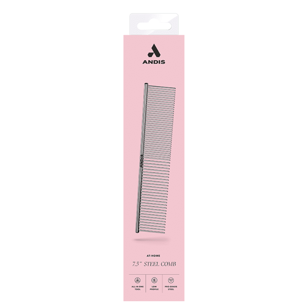 Domina sus mechones con el peine de acero Andis de 7-1/2", ideal para hacer que perros y gatos luzcan lo mejor posible todos los días. Los dientes de acero de calidad profesional, afilados por expertos, eliminan la suciedad y el pelo suelto, estimulan los folículos y dejan el pelaje sano. , brillante y fresco.