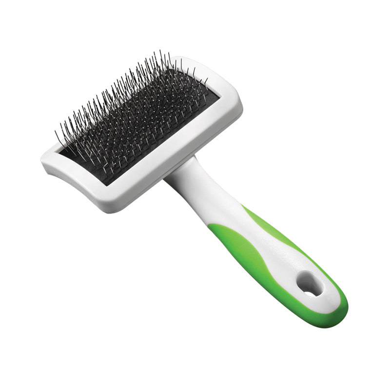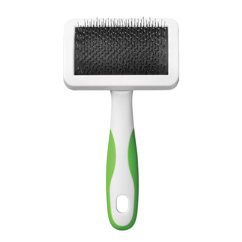 Elimina los enredos al mismo tiempo que elimina el pelo muerto de la capa inferior y la capa superior +Ideal para razas pequeñas +Diseño de agarre suave