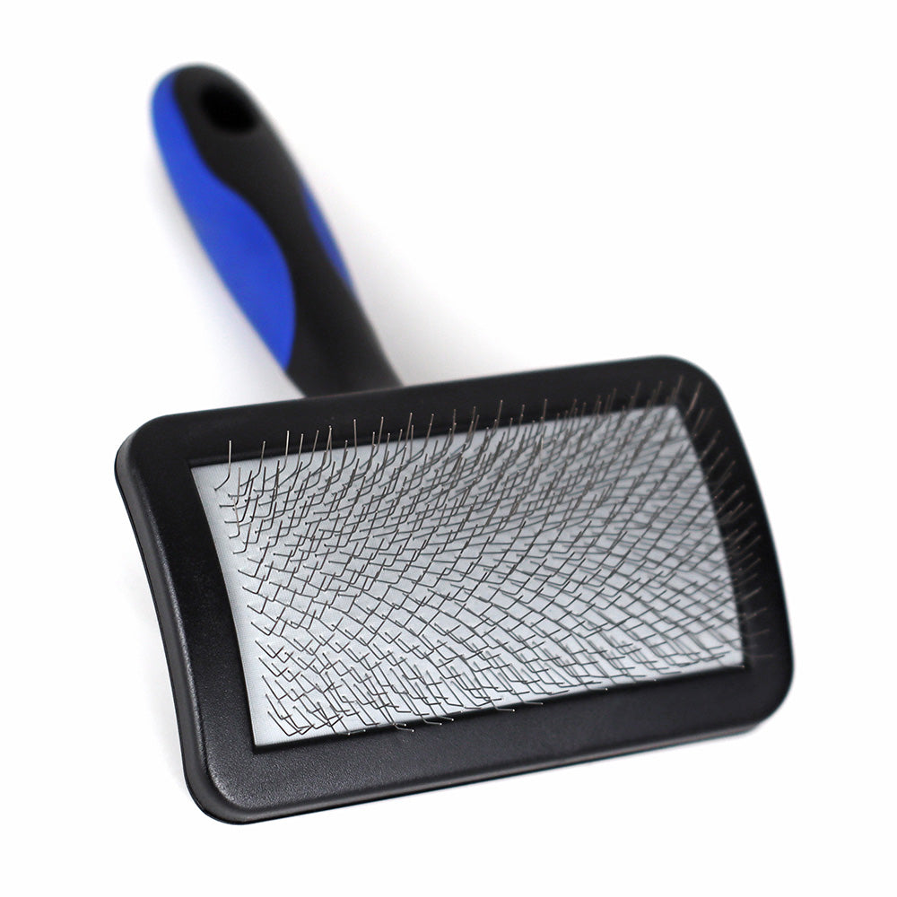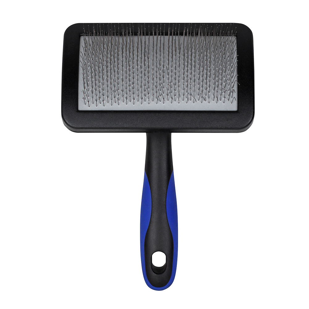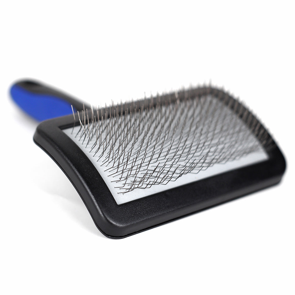 El diseño clásico de la parte trasera curva de la rasqueta Show Tech facilita el acceso a las zonas difíciles y sensibles. Ligeros para reducir la fatiga de la mano, estos cepillos están moldeados de plástico ABS resistente a los impactos con un mango antideslizante. La almohadilla flexible permite que las horquillas se flexionen con el cabello, lo que minimiza el daño del pelaje. El cepillo ideal para usar al secar la capa debido al espacio extrafino de los pasadores de acero inoxidable.