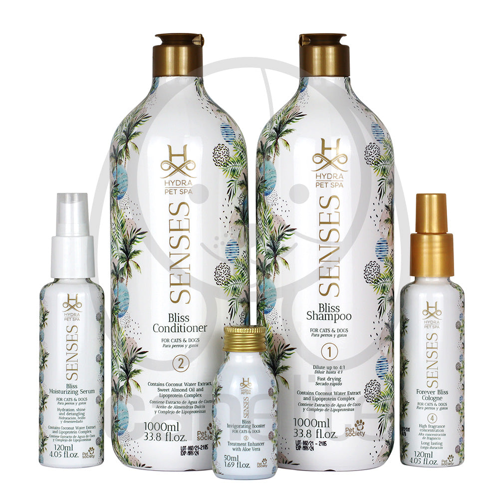 La colección Hydra Pet Spa está revolucionando el concepto de servicios profesionales para los salones de belleza en todo el mundo. Estimula los sentidos con un brillo visiblemente mejorado, una suavidad al tacto y una fragancia duradera que captura la esencia de la naturaleza misma. Nuestra segunda colección Bliss proporciona un encuentro con lo mejor del verano, aportando efectos sorprendentes en la recuperación, hidratación y frescor para la piel y el pelaje de las mascota.