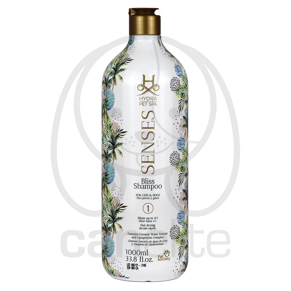 Diluir 1 parte del Bliss Shampoo en 4 partes de agua. Moje la capa y extienda bien el producto masajeando hasta que forme una espuma uniforme y enjuague. Si la mascota está muy sucia, bañe previamente con el Hydra Odor Neutralizing Shampoo. Enjuague completamente.