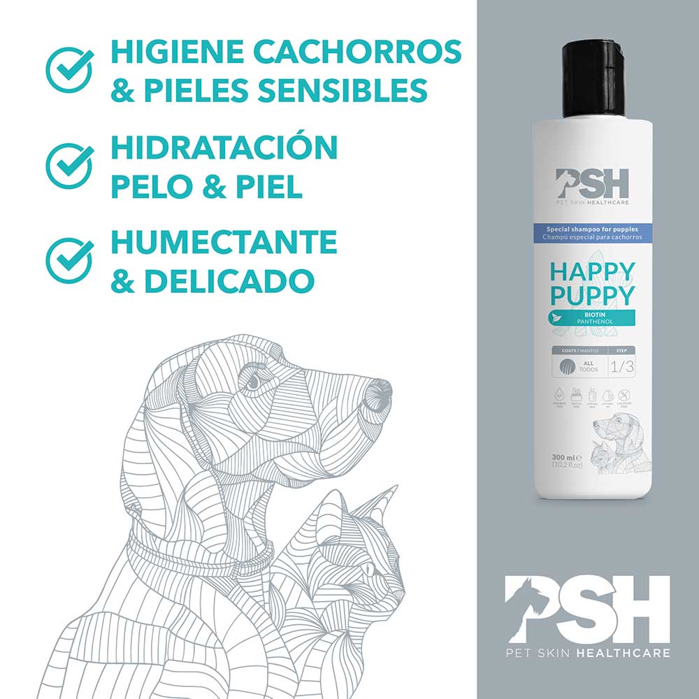 El shampo Happy Puppy está indicado para la higiene y cuidado de la piel y el manto de cachorros, mantos puppy. Formulado con activos que mejoran el nivel de humectación y la penetración en la piel, la levadura fortalece la fibra capilar de manera delicada.