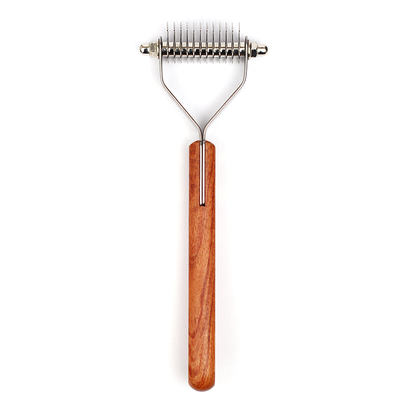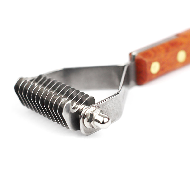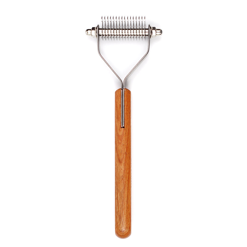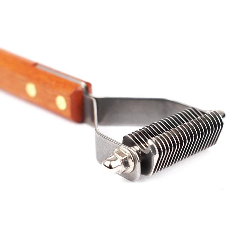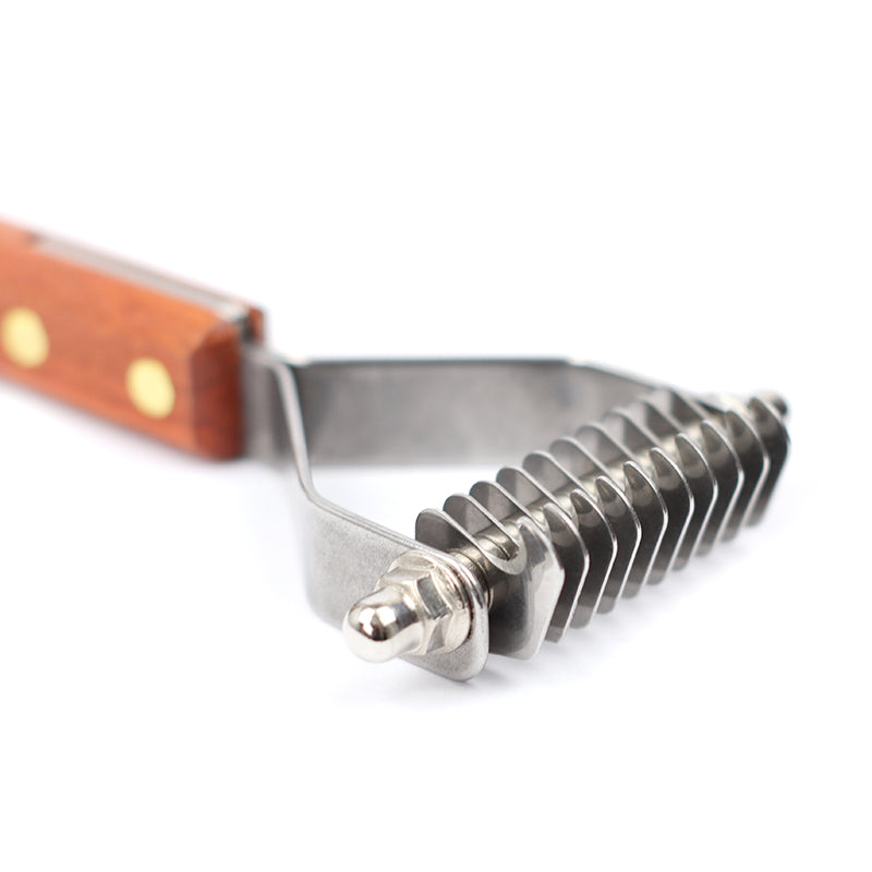 Deslanador/cortanudos con mango de madera con 8 - 10 - 12 - 16 - 20 hojas de punta redondeadas curvas con filo interior para eliminar subpelo y cortarenredos además de eliminar pelo de muda.