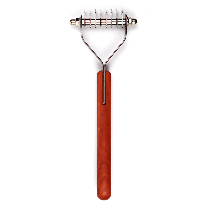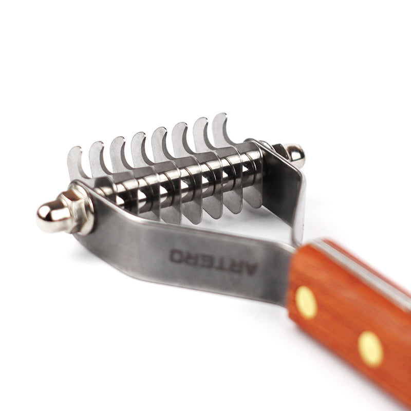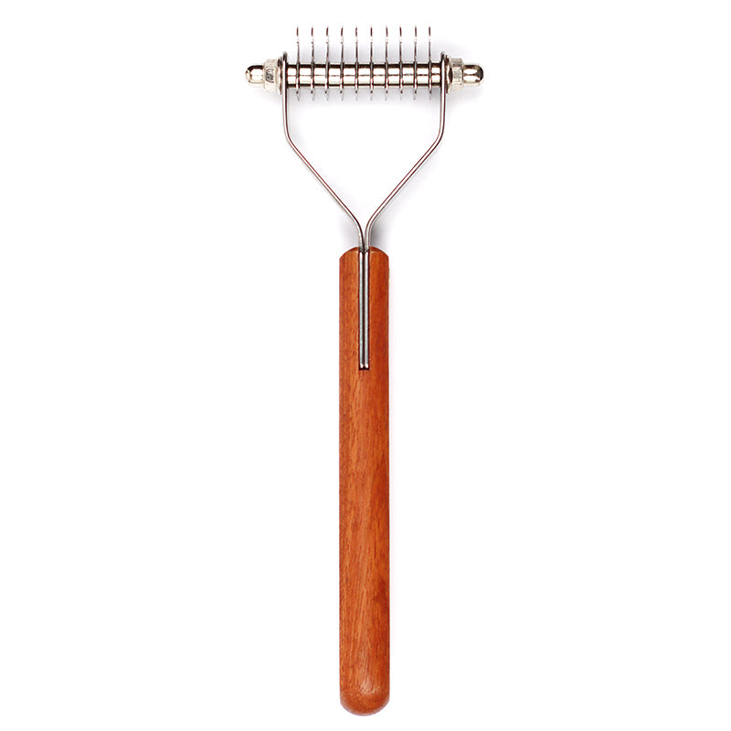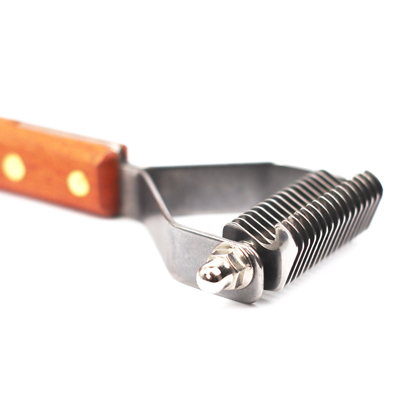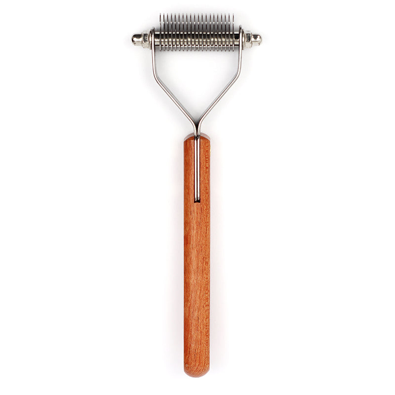 Deslanador/cortanudos con mango de madera con 8 - 10 - 12 - 16 - 20 hojas de punta redondeadas curvas con filo interior para eliminar subpelo y cortarenredos además de eliminar pelo de muda.