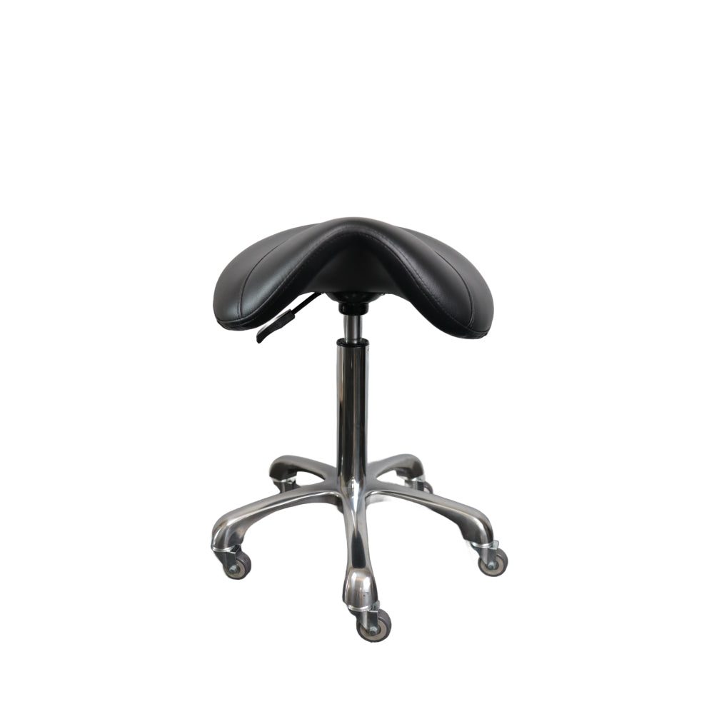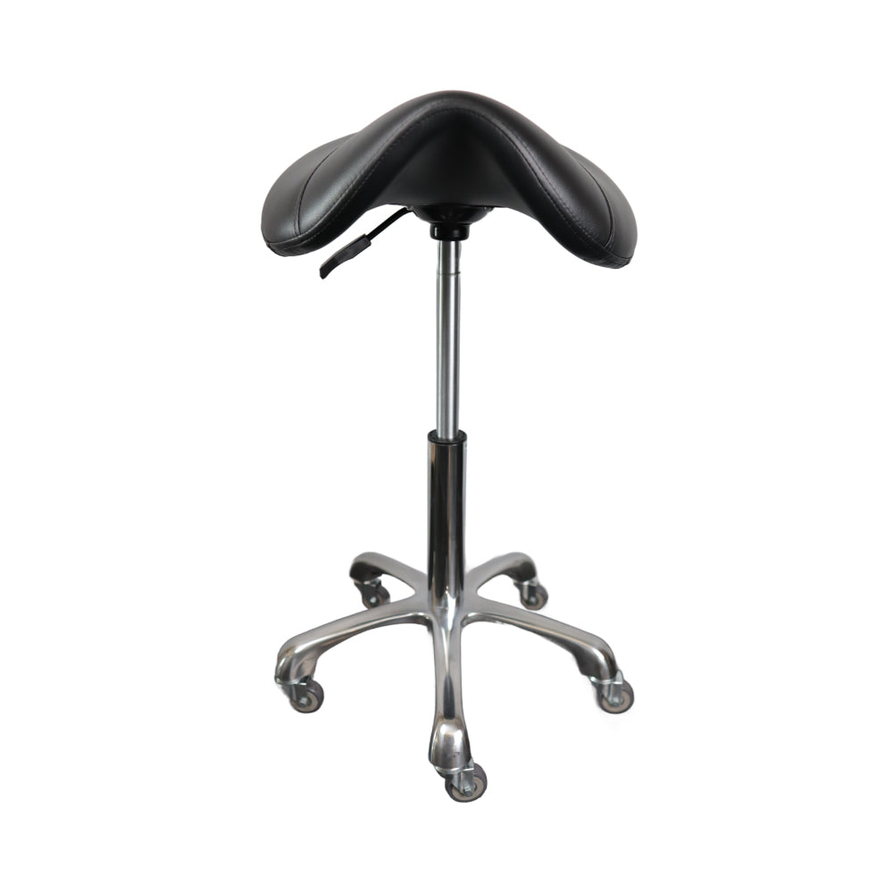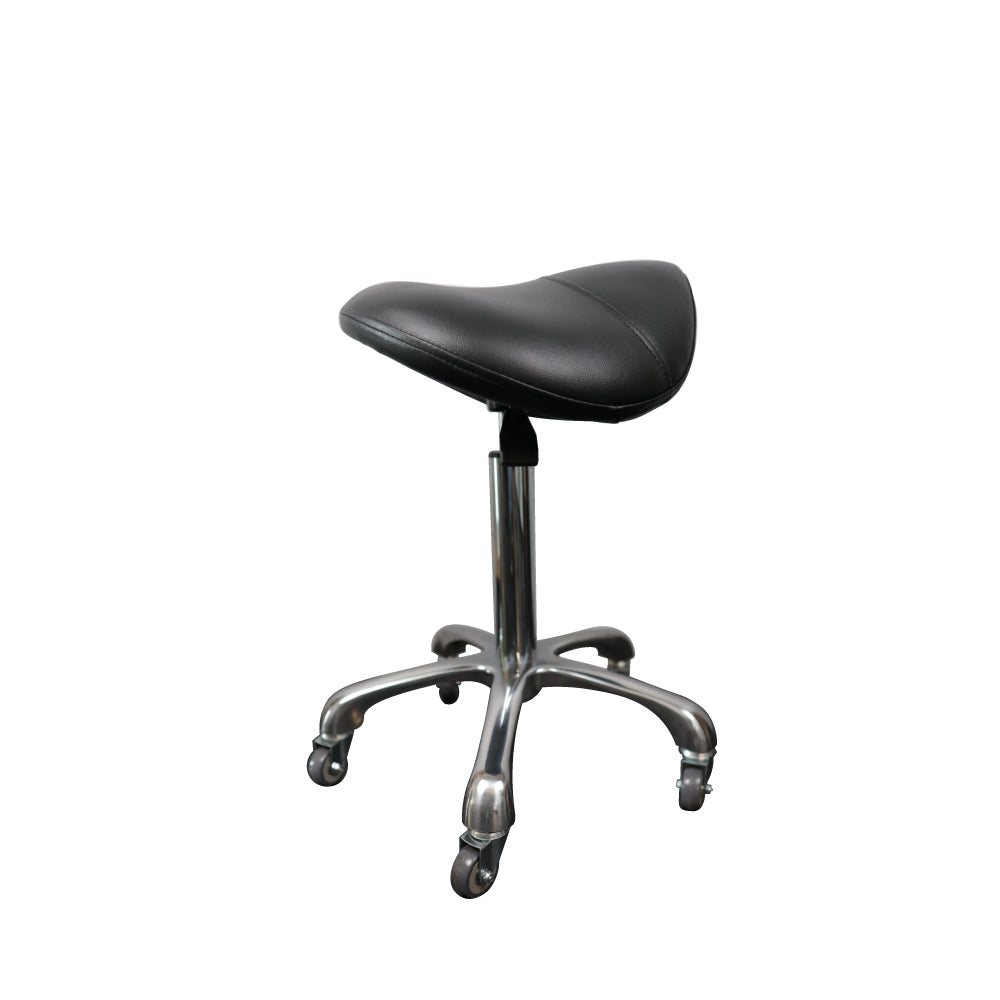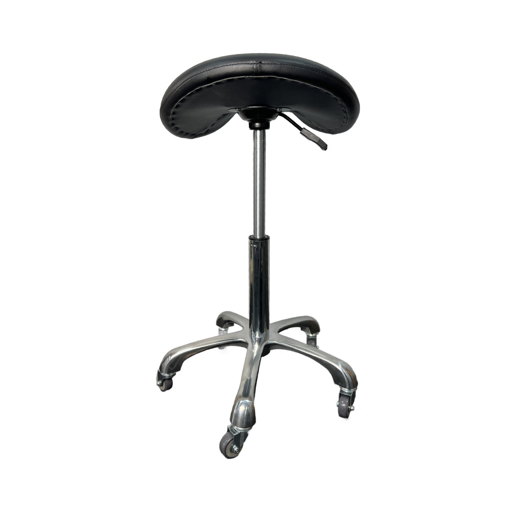 Su altura es fácilmente ajustable mediante una palanca ubicada bajo el asiento, permitiendo configurarlo entre 57 cm y 77 cm para adaptarse a distintas superficies de trabajo. Además, su asiento giratorio facilita la movilidad y flexibilidad necesarias durante las sesiones de peluquería.