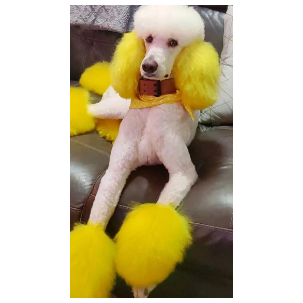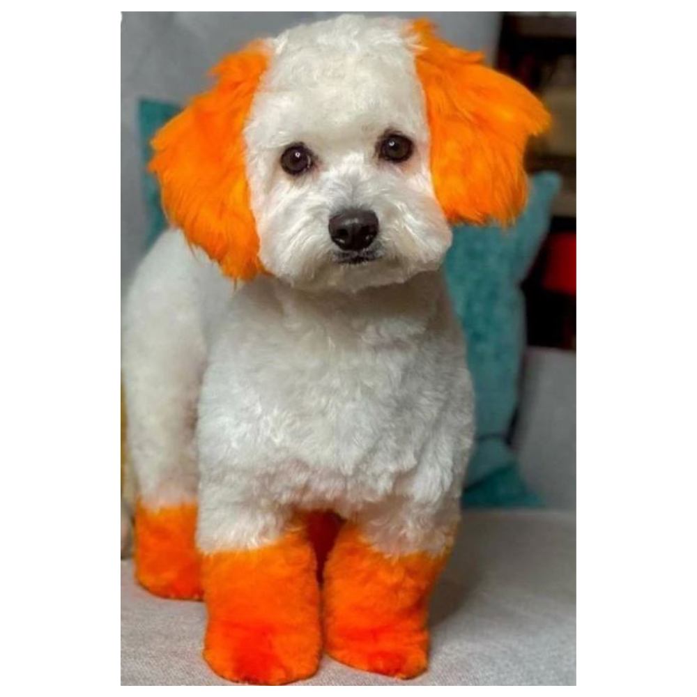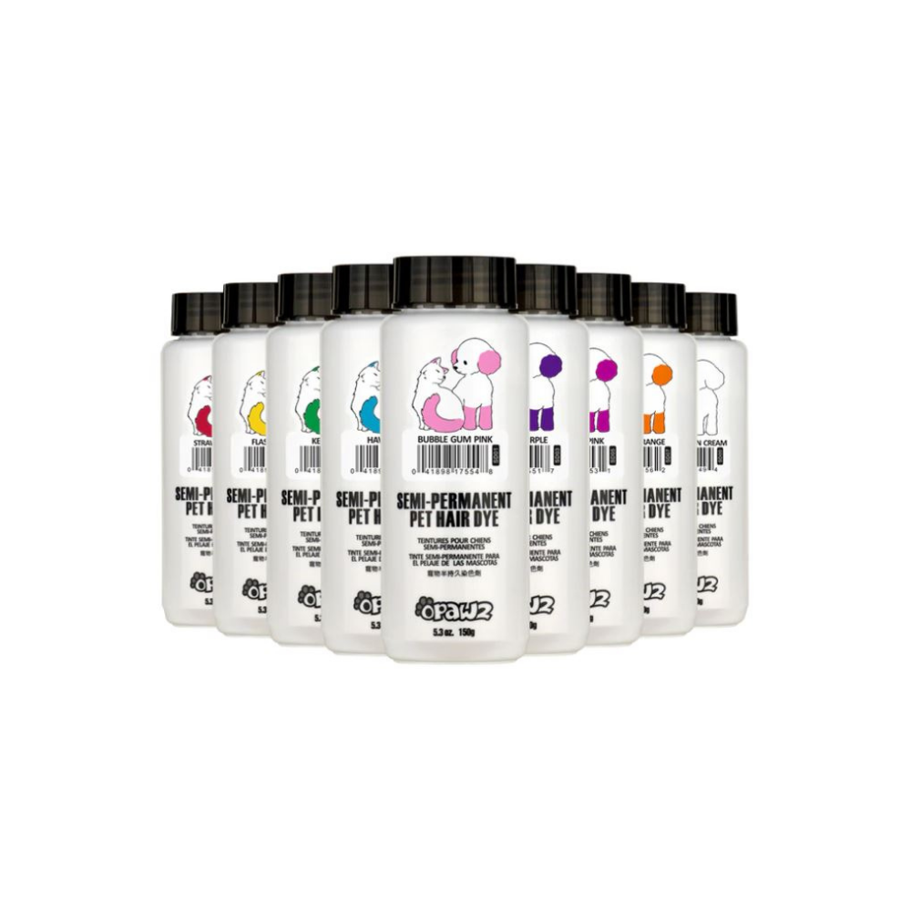 • Los colores durarán más para las mascotas de pelaje fino y suave, como Bichon y Poodle. El color suele durar alrededor de 12 lavados.