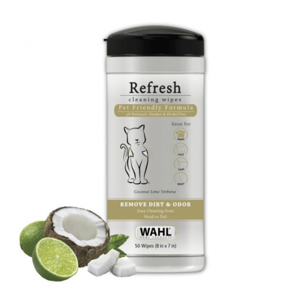 - Toallitas para mascotas con pH equilibrado, sin alcohol y sin parabenos, con un aroma de coco y lima verbena que elimina el olor y la suciedad con facilidad